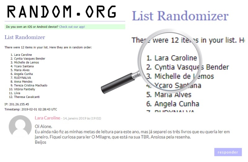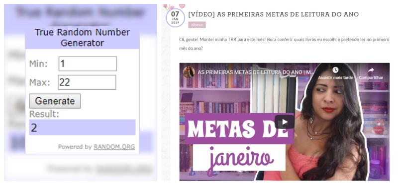 - Como dito nas regras, foram desconsiderados os posts exclusivamente de promoções. Assim, entre as 22 postagens válidas de Janeiro, foi sorteado o post [Vídeo] As primeiras Metas de Leitura do Ano do dia 07/01.